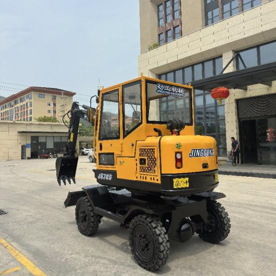 Maniobrabilidad: Las ruedas de la miniexcavadora son muy maniobrables, lo que les permite trabajar en espacios reducidos y sortear obstáculos.